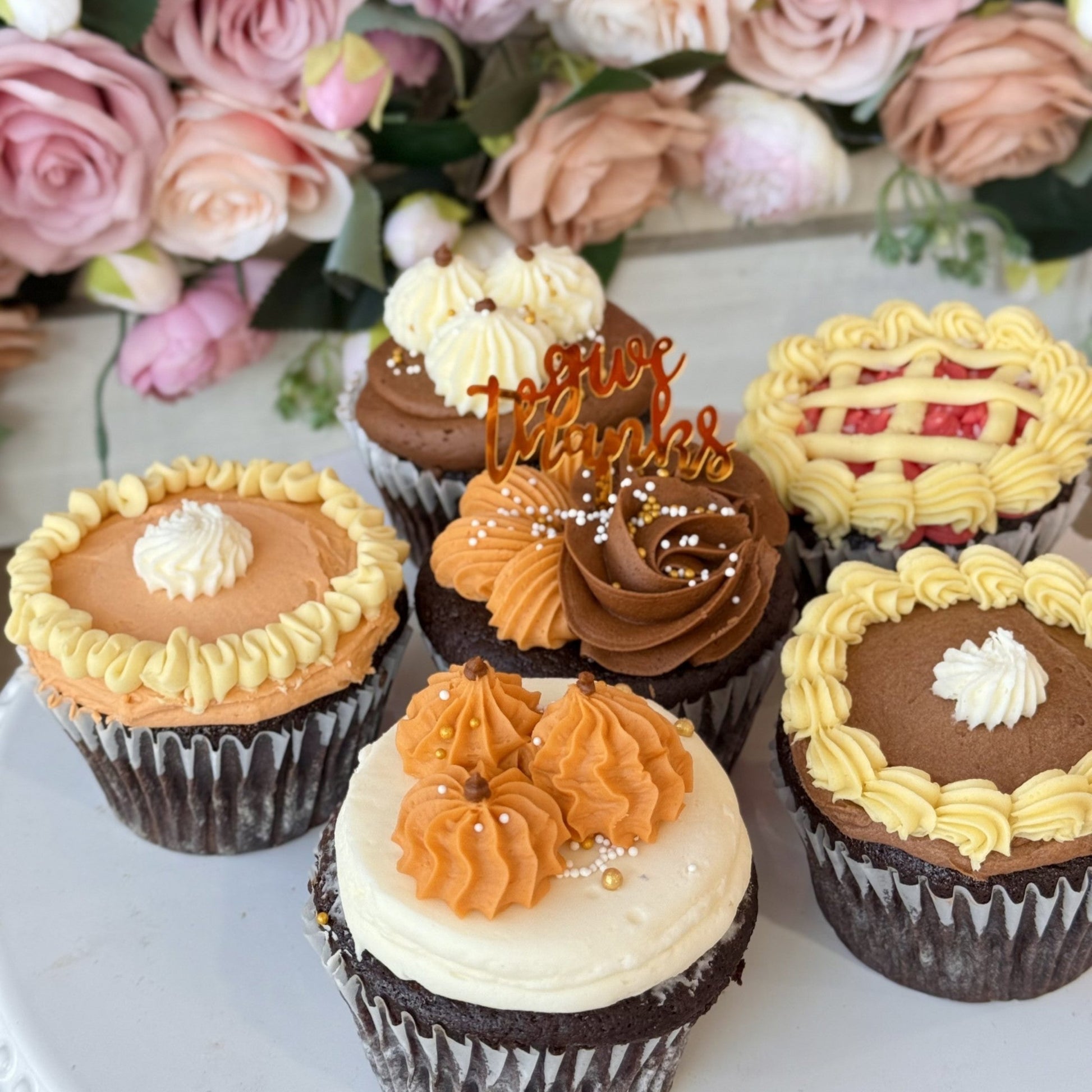 6 adorable cupcakes with Thanksgiving designs. Your choice of vanilla, chocolate or half and half. They are decorated with vanilla buttercream.