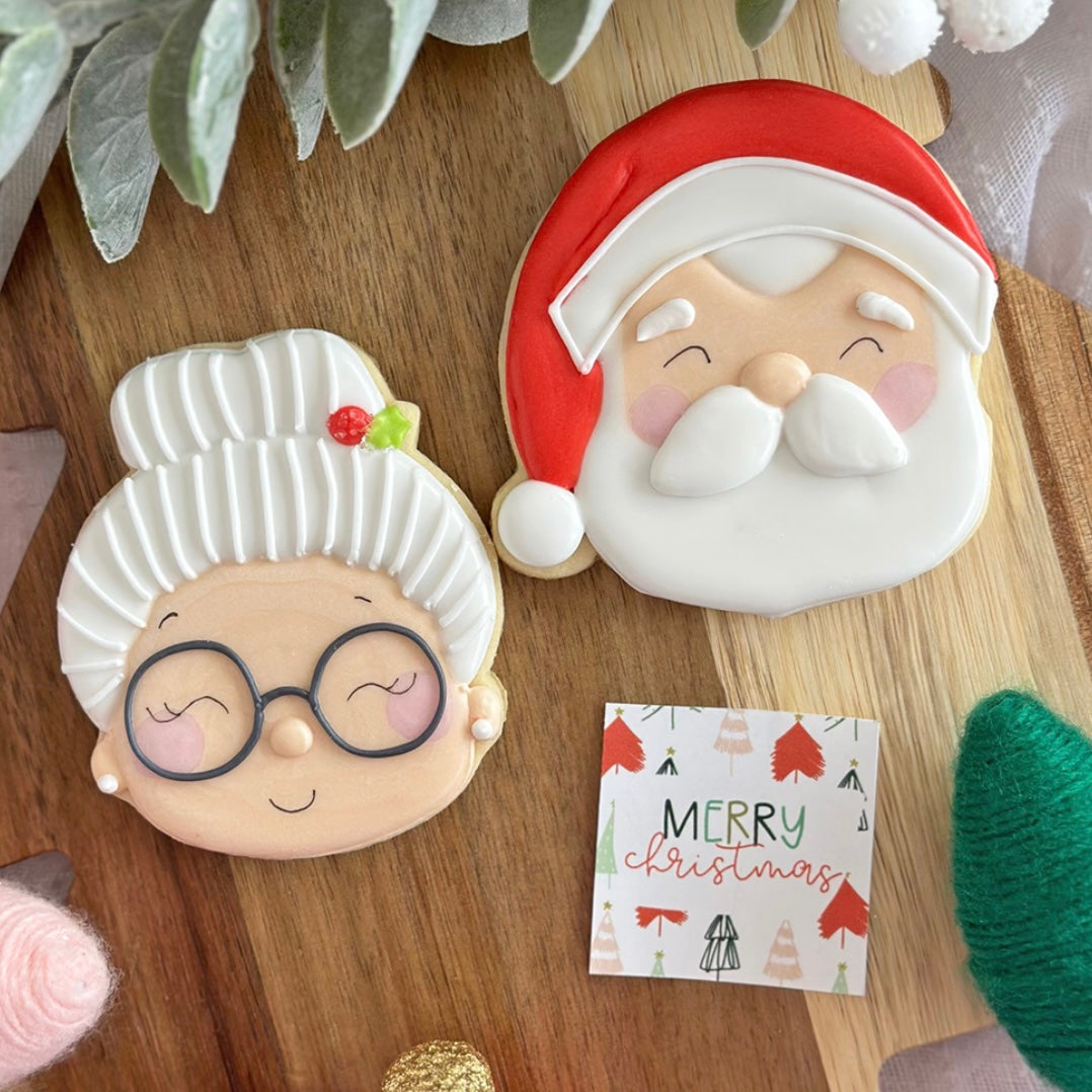 This item comes with 2 large vanilla sugar cookies decorated as Santa and Mrs.Clause. A perfect gift for teachers, employees. clients, etc!